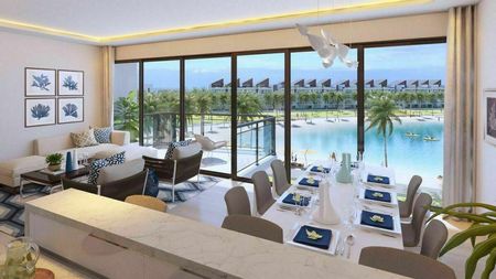 Complejo de apartamentos cerrado con una exclusiva playa privada ecológica diseñada por Crystal Lagoons.